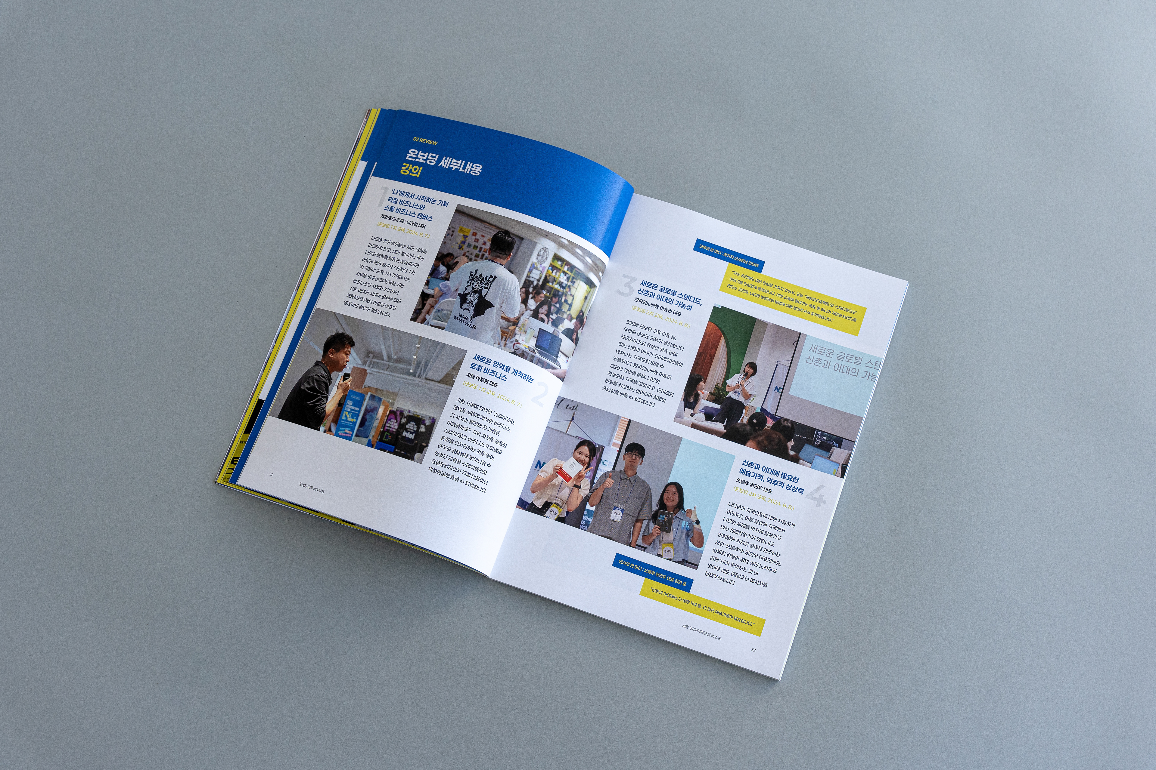 The Seoul Creator School Sinchon Archive Book is a new initiative designed to capture the voices of urban creators. Set against the backdrop of Sinchon, a culturally layered neighborhood in Seoul, this archive brings together stories and works from creators across generations and disciplines. While preserving the raw and experimental nature of each contribution, the book applies a unified grid and restrained editorial design to elevate its physical presence. This publication not only documents moments of creation but also serves as a source of inspiration for the next generation of makers.